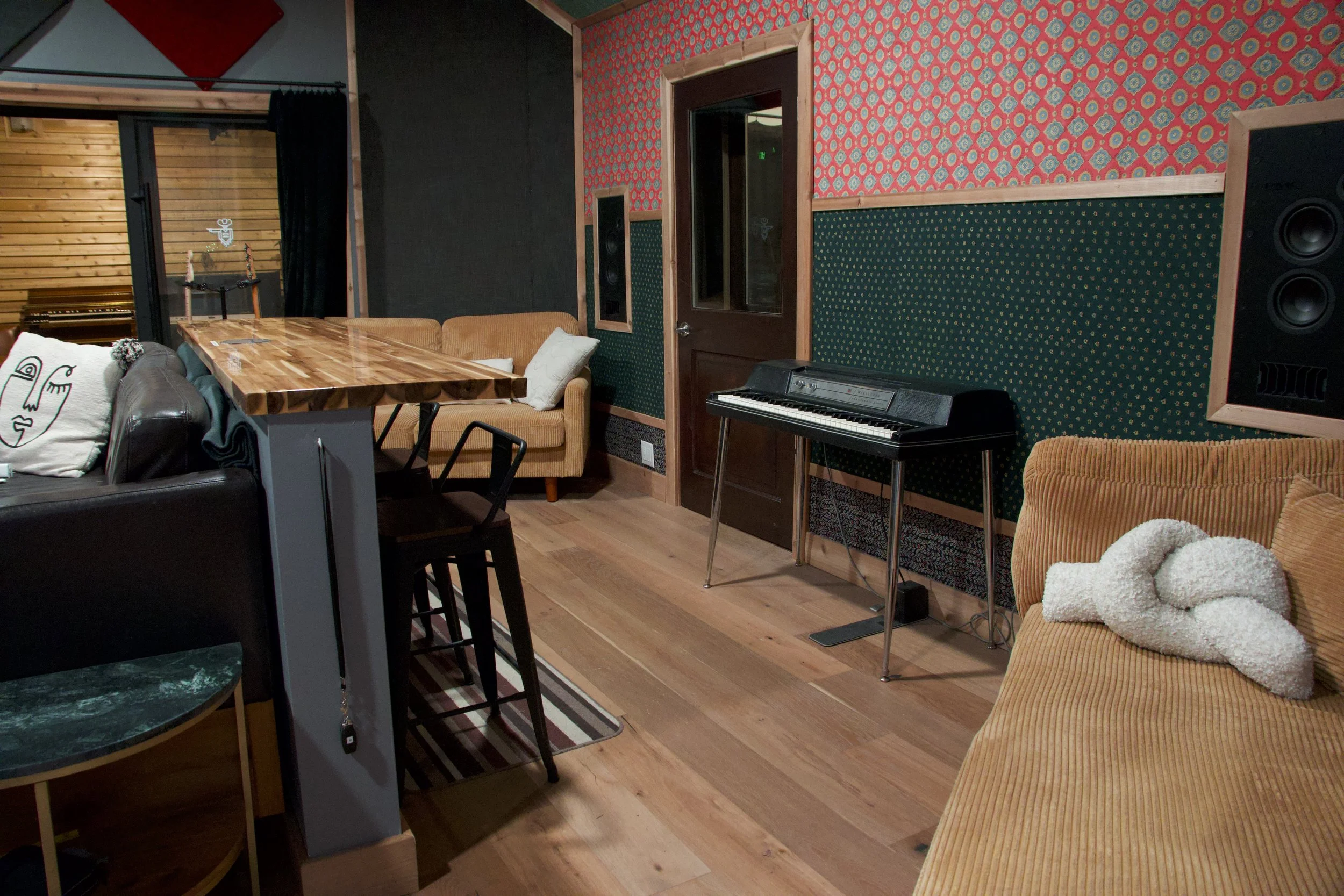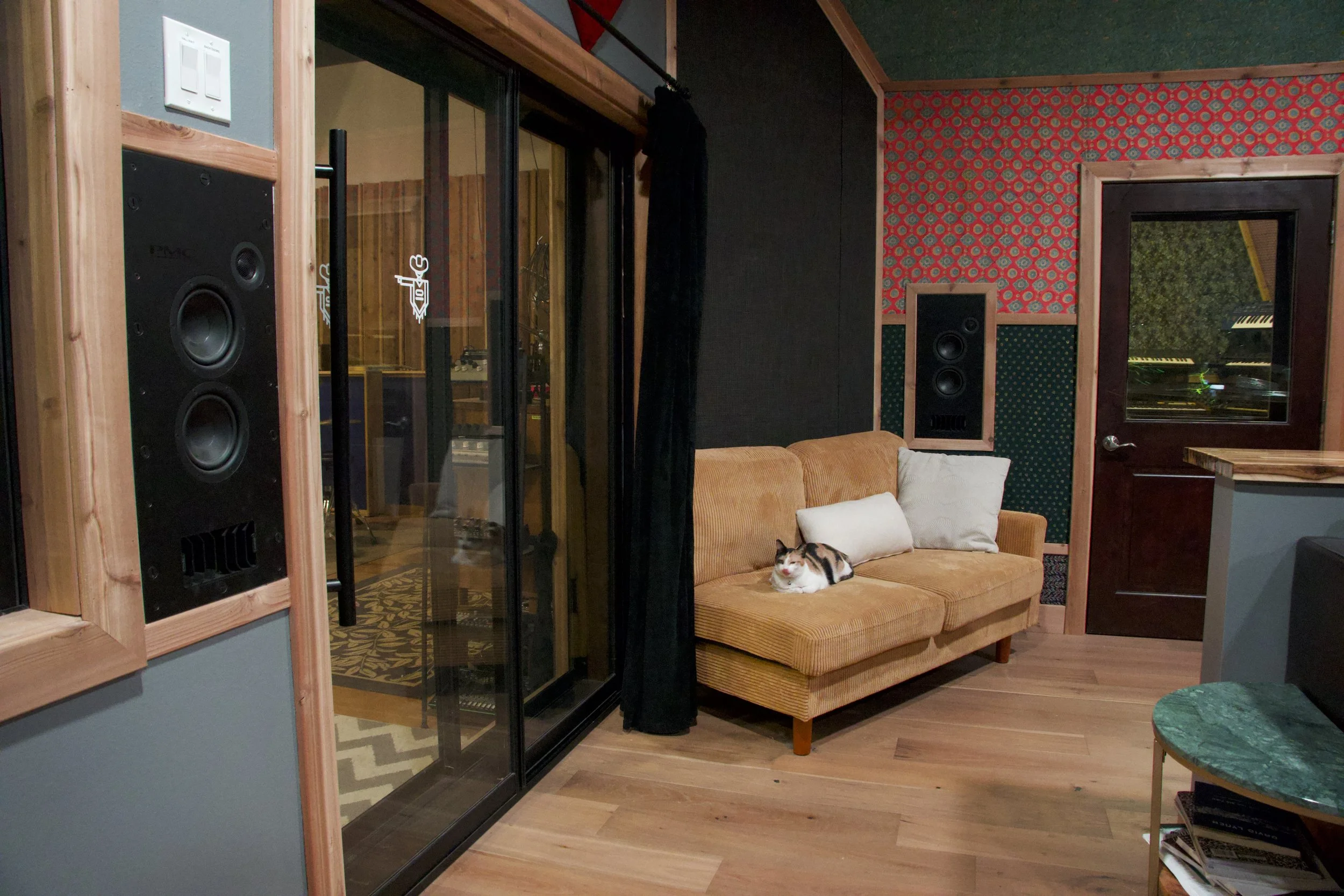 The large control room can comfortably sit eight people while the artists working in the recommended listening position have optimal ear height. Positioned next to the Live Room and Dead Iso Room, everyone has direct line of sight to most other parts of the studio.