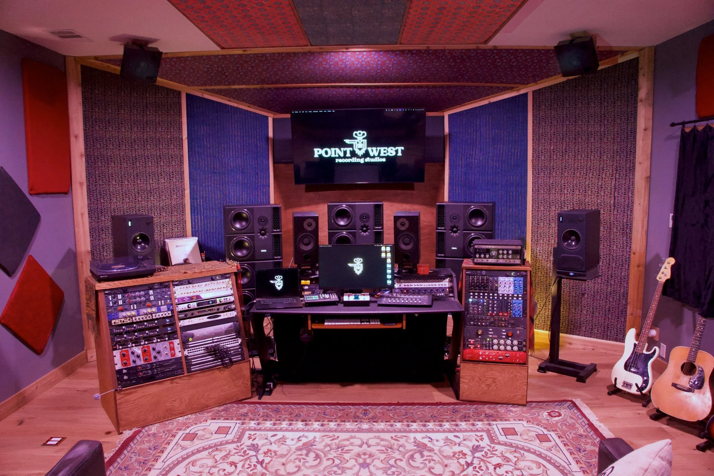 Control Room A was designed and built with laser accuracy to be the ideal dimensions for immersive monitoring. The 9.1.4 PMC monitoring system has a quad-amped mains with tweeters, mid-range, subs, and a sub-harmonic speaker producing everything below 25hz. The wide dispersion speaker designs create a large center section in stereo and immersive monitoring.